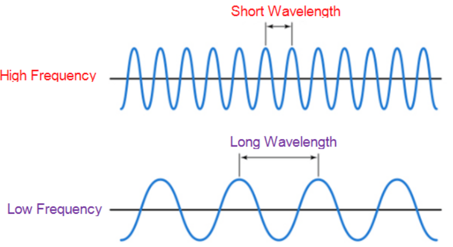 In the above example, we can see a wave signal, with a shorter wavelength takes much lesser time to travel the same distance than a longer wavelength.