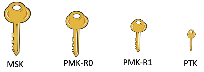 - Pairwise Master Key R1 (PMK-R1) : This key is derived from PMK-R0 – Second level key of FT key hierarchy