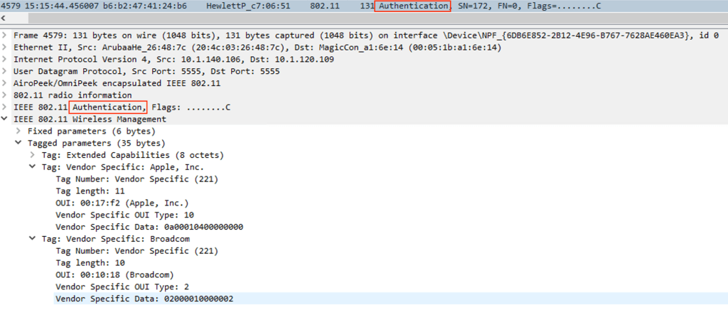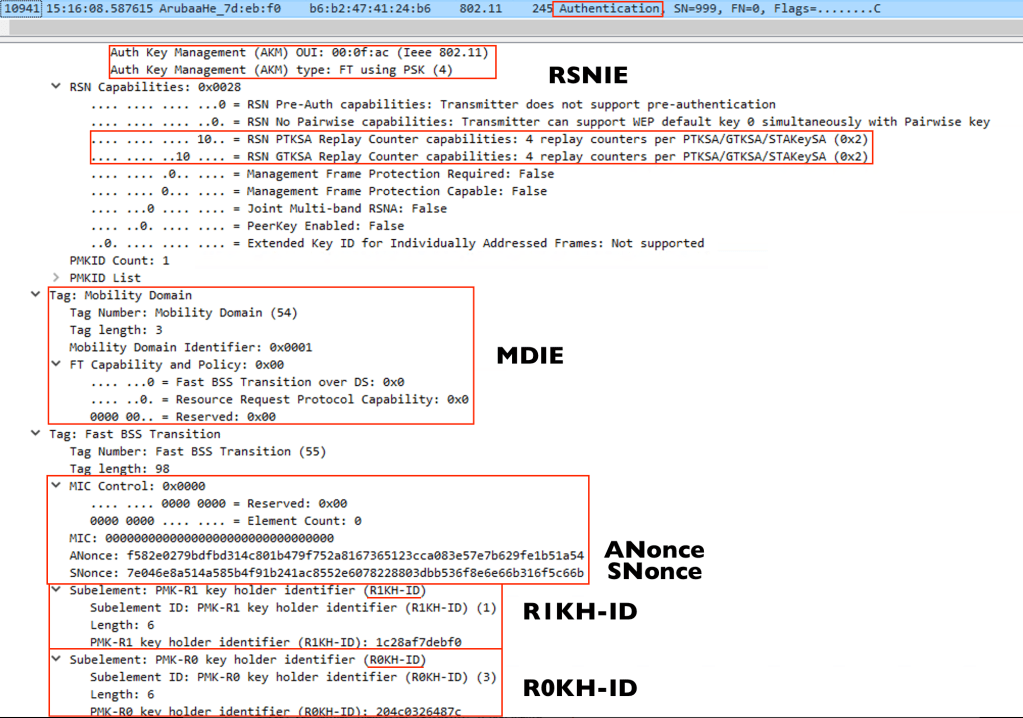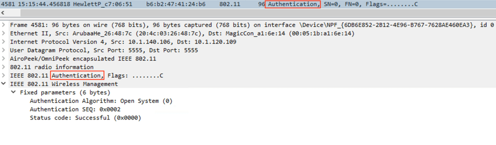 NOTE- Aruba wireless controllers and Access Points only supports Over-The-Air mechanism, so I only have the packet captures for this mechanism and not for Over-The-DS.