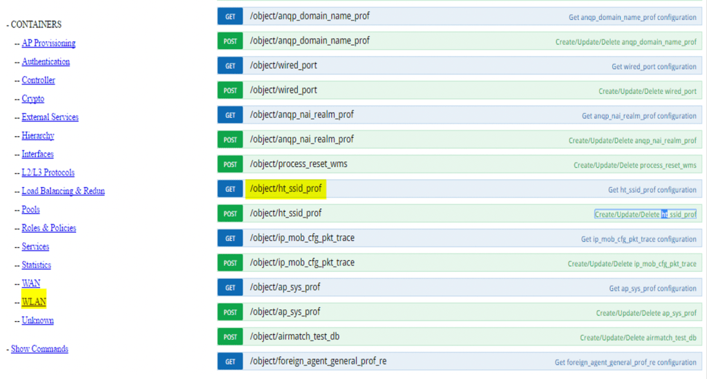 Now let’s check the same GET Option for an object (HT_SSID_PROF) using CLI
