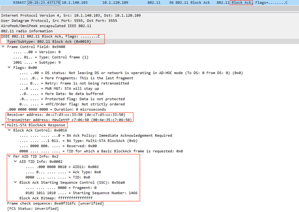 Wireshark filter – (wlan.fc.type_subtype == 0x0019) and (wlan.ba.control == 0x0016)