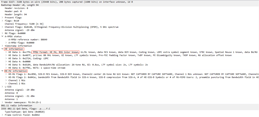 Wireshark filter – radiotap.he.data_1.ppdu_format == 0x2